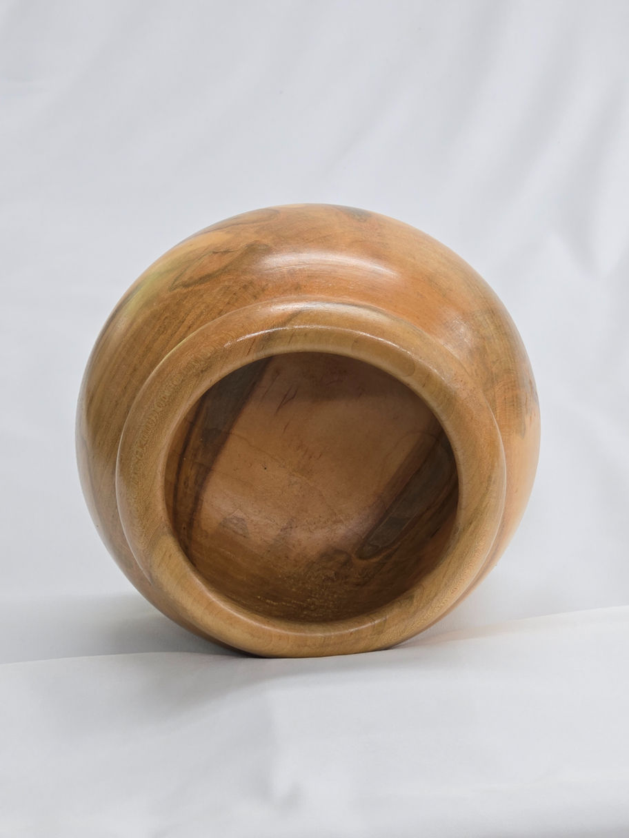 Light Box Elder tones with dramatic streaks of gray and brown. A balanced design emphasizes the striking color variations, while a hand finish enhances the natural warmth of the wood. This bowl is food safe.