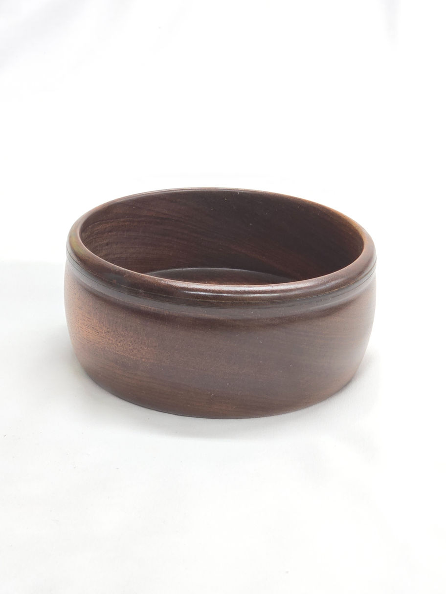 This Mahogany bowl is notable for its distinctive craftsmanship. Additionally, the beauty ofthe interlocked grain produces a fine texture. It is food safe for daily use.